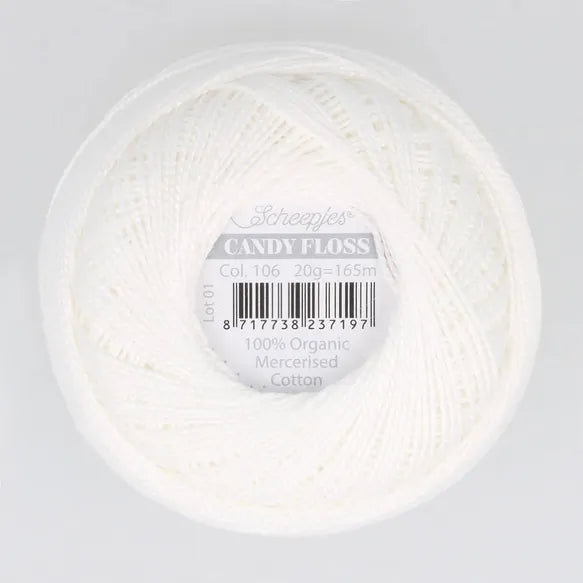 Dive in a magical candy store with the sugary-sweet Scheepjes Candy Floss. Candy Floss is the first Scheepjes collection that falls outside the crochet and knitting yarns category. This makes Candy Floss a unique and versatile yarn. Scheepjes Candy Floss is made from 100% Organic Mercerised Cotton. This thread yarn has a high twist and a smooth shine, which results in gorgeous, defined stitches in your work. Moreover, it does not split. All these characteristics make Scheepjes Candy Floss the perfect choice for a wide variety of techniques and projects: think of free embroidery, Sashiko stitching, tatting, hand quilting, micro crochet projects such as amigurumi and jewellery or working crocheted edges to blankets, accessories and clothing.